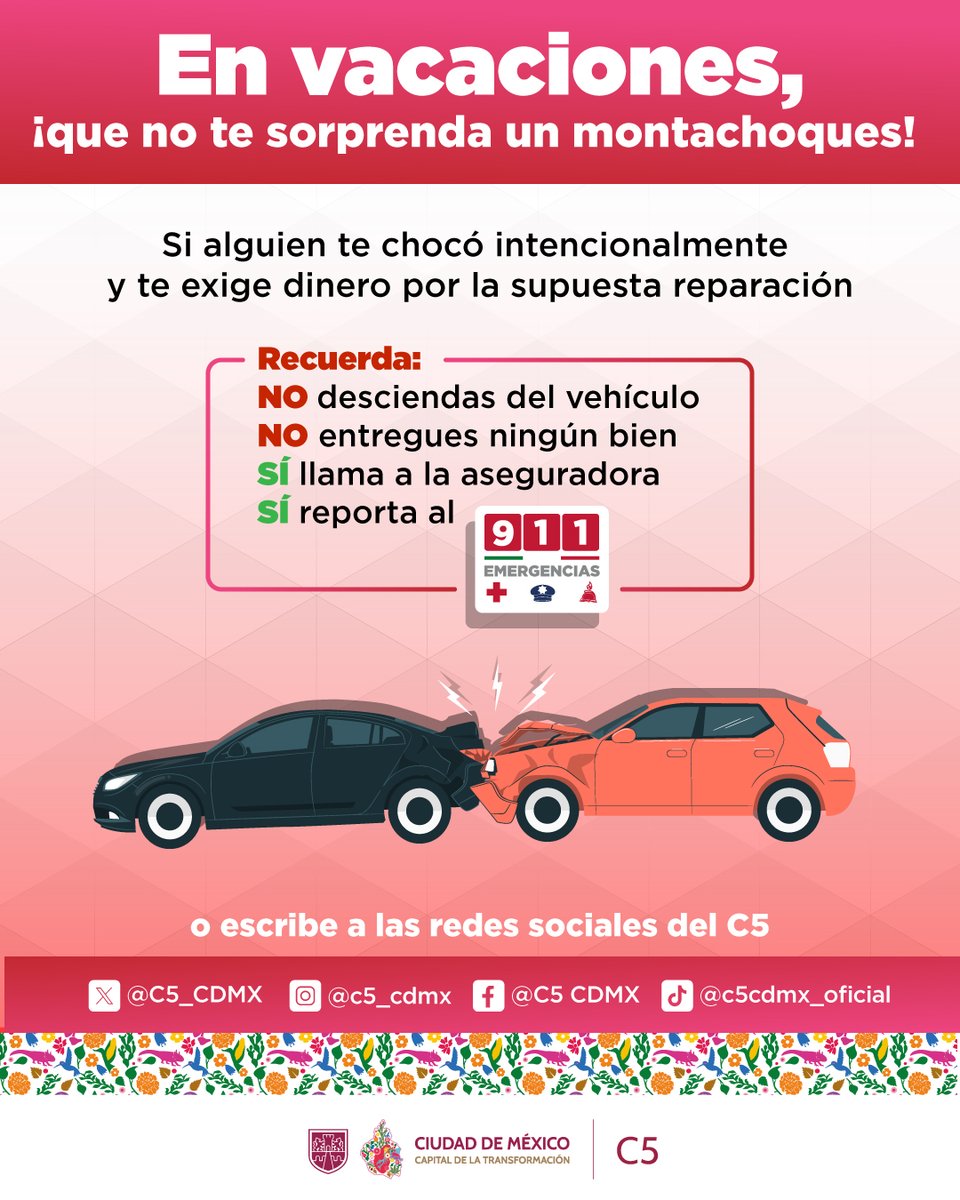 ⚠️🗣️ Reporta a quienes se dedican a provocar accidentes vehiculares para obtener recursos económicos o materiales mediante amenazas y/o extorsión 🚫🫵🏻🛑