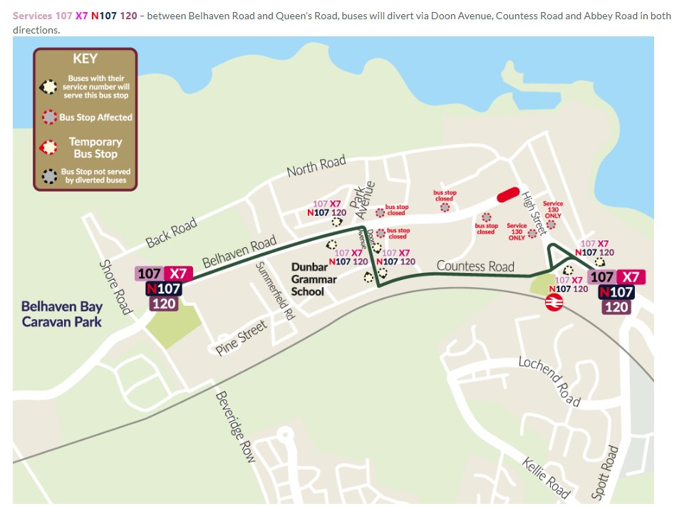 ⚠️Customer Information⚠️ Services 107, 120, X7 & N107 - Due to emergency gas works, West Port (Dunbar) will be closed from 1700 hrs on Wednesday 11th Dec. Further information can be found on our website shorturl.at/kYBiQ