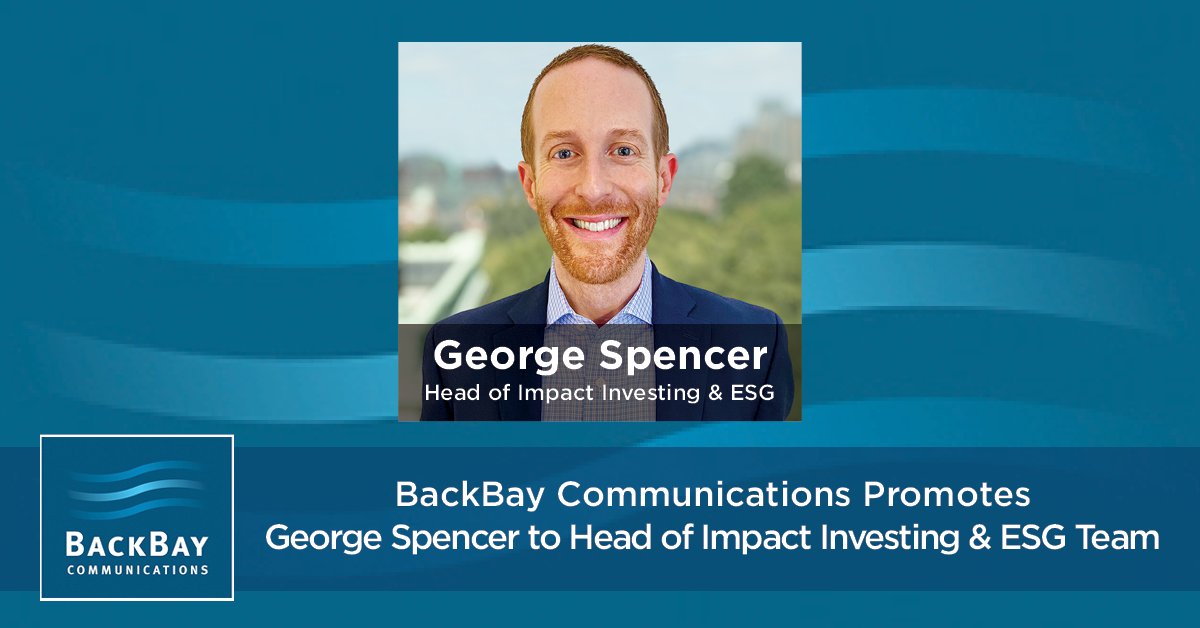 We are thrilled to announce @georgehspencer has been promoted to lead @BackBayComm's #ImpactInvesting & #ESG Team. #PR #Communications #Sustainablefinance tinyurl.com/ms6wdd5e