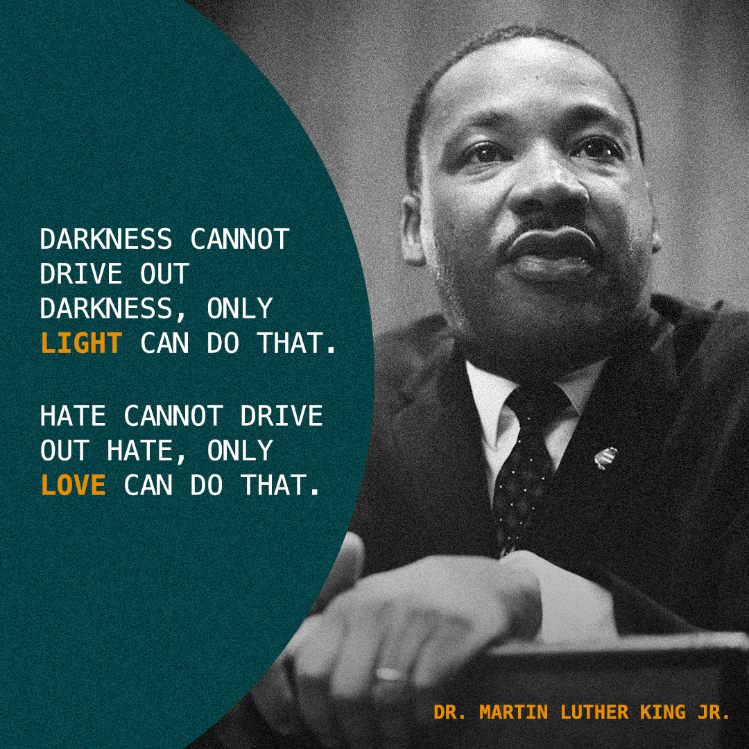Darkness cannot drive out darkness, only light can do that. Hate cannot drive out hate, only love can do that. - Dr. Martin Luther King Jr.