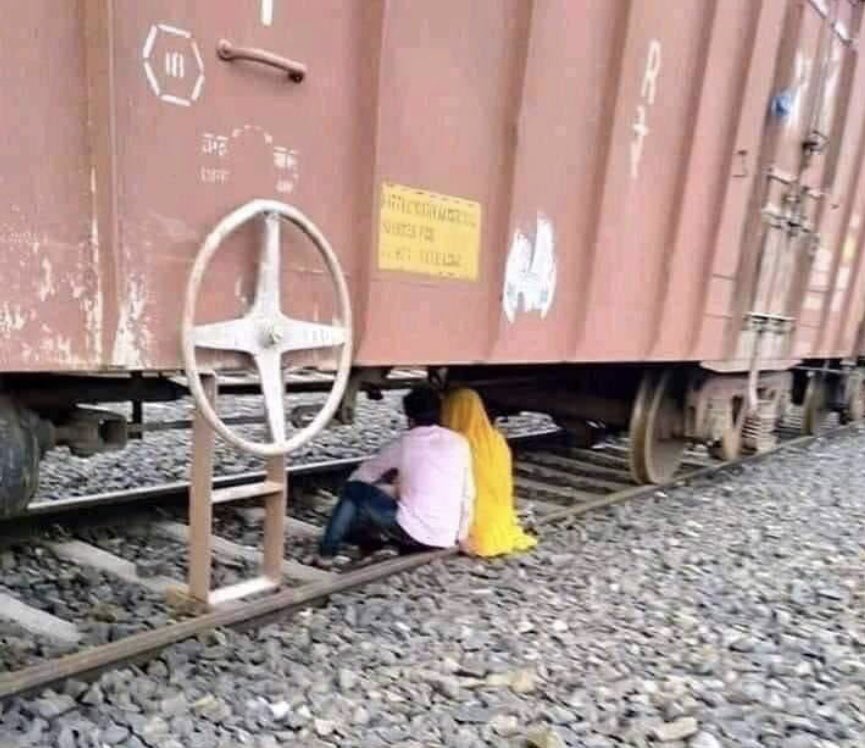 This is Dangerous and a punishable offence ! Please never try to reach under any stationary wagon or coach. It may move without giving any warning. Cross Railway track only from authorised locations. STAY ALERT STAY SAFE !!!