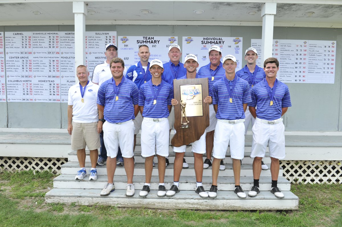 10 Years Ago Today (June 18, 2014)... Columbus North won its first golf title since 1934 and Bull Dog teammates Christian Fairbanks and Michael VanDeventer finished as co-state champions, the first teammmates to tie for medalist honors in state tournament history! 🏆⛳️🔵⚪️…