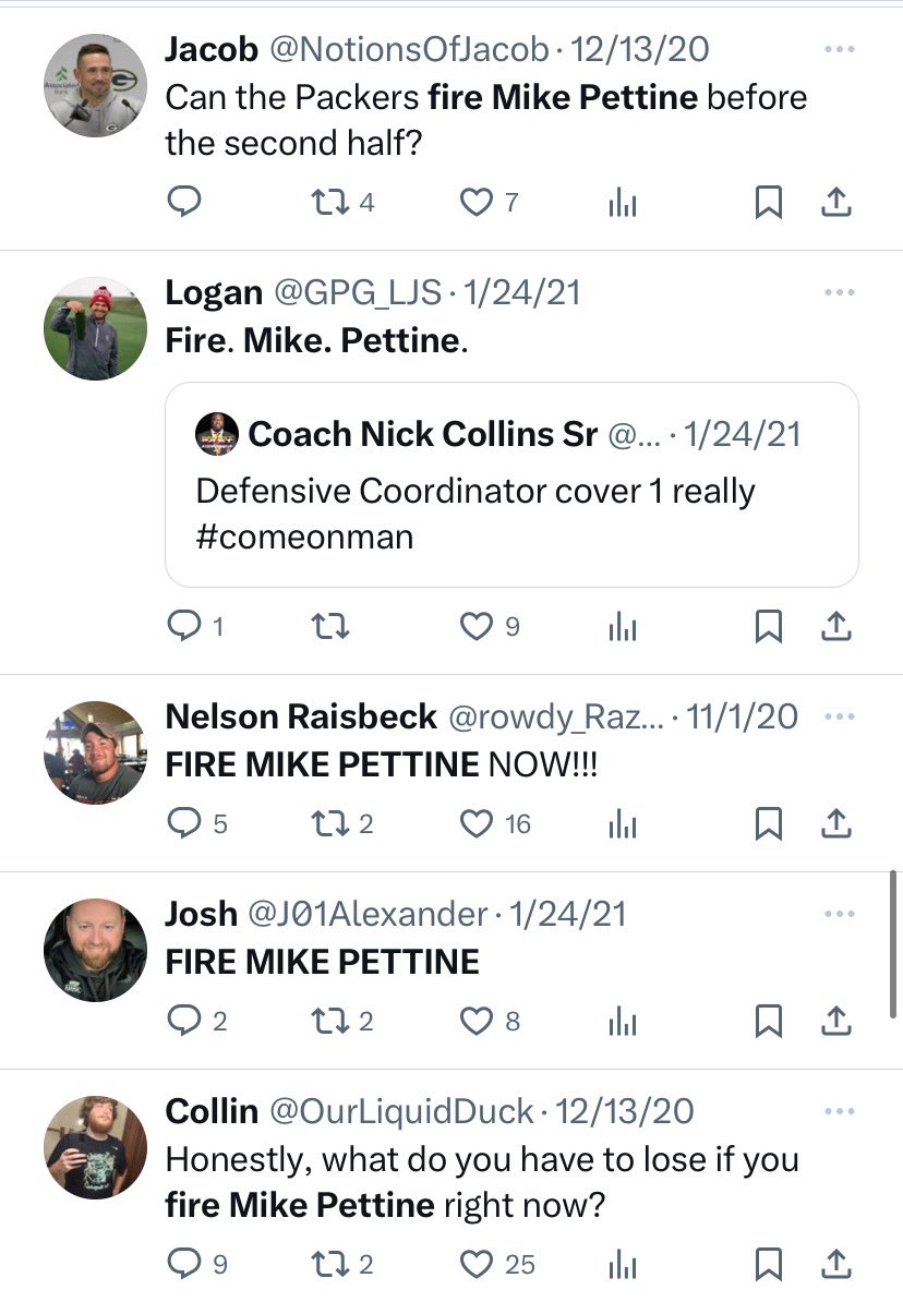 Packers fans asking to fire DCs literally goes back to the beginning of twitter. A tradition like no other.