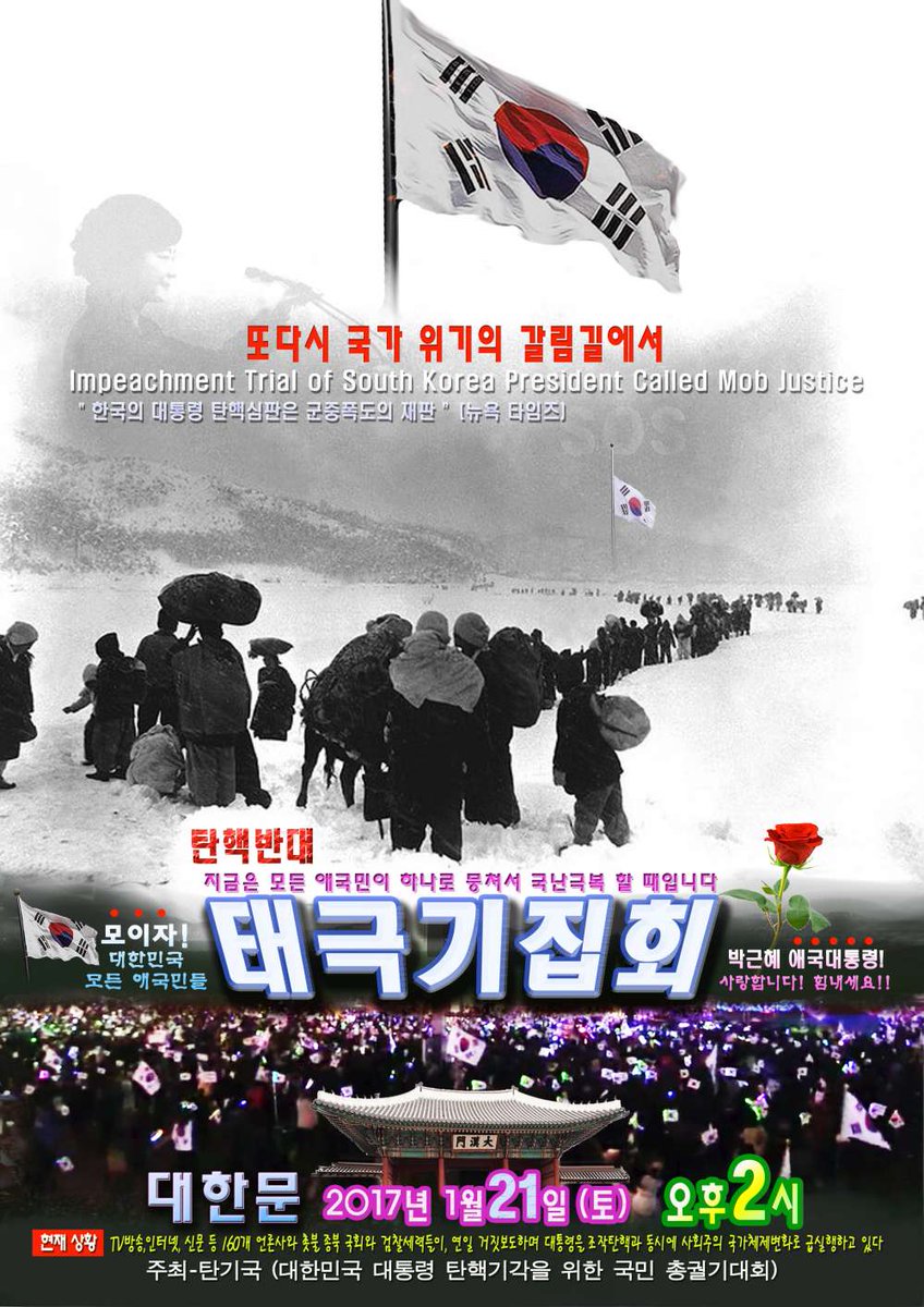 누가! 이 나라를 지켜오신 이분들을 차디찬 길바닥으로 나서게 했는가? 누가! 나라를 이만큼 먹고살게 만드신 이 어르신들을 죽음으로 내모는가? 선동언론! 선동정치꾼! 선동특검! 너희들이야말로 죽음을 기다리라! 피눈물 흘리는 국민들이 안보이나?!