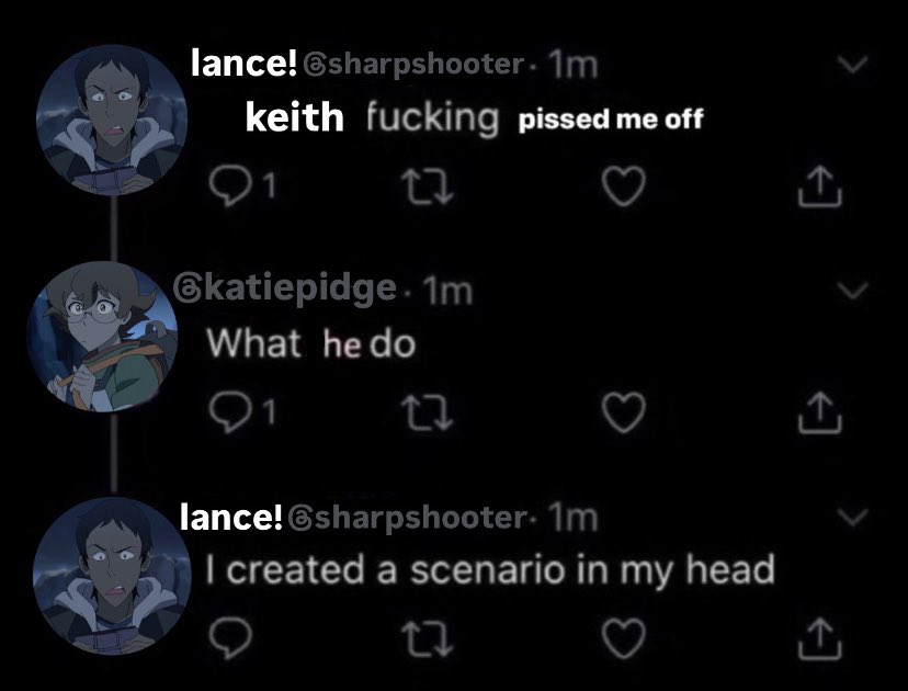 i think i know more about keith and lance from voltron than you do genius...lance haters BLOCK ME!!! priv: @bootylover444