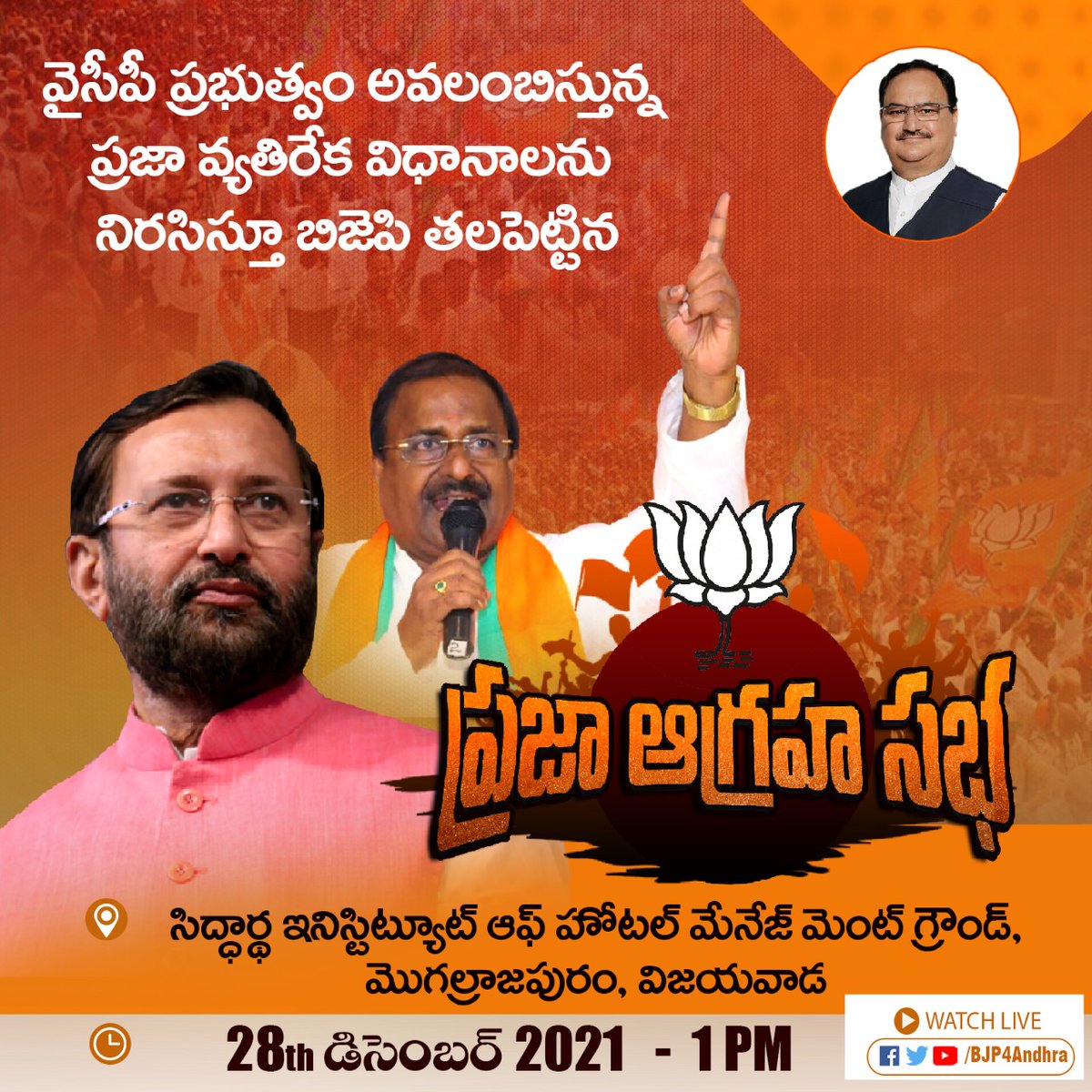 రండి! తరలి రండి!! రాష్ట్ర ఆర్థిక వ్యవస్థను చిన్నాభిన్నం చేసి, అభివృద్ధిని అటకెకించి, కక్షలు, కార్పణ్యాలతో రాష్ట్రాన్ని అధోగతి పాలుచేస్తున్న @YSRCParty దుష్పరిపాలన నుండి రాష్ట్రాన్ని రక్షించుకుందాం! #APNeedsBJP
