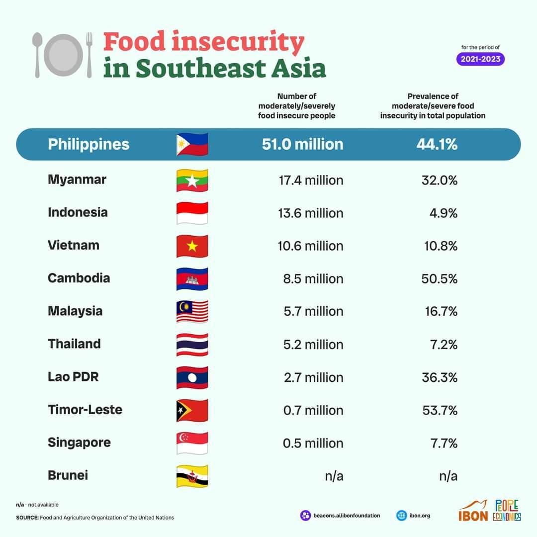 The Philippines has the most number of citizens experiencing moderate-to-severe food insecurity in Southeast Asia. #WorldFoodlessDay #WorldFoodDay #WorldFoodDay2024 #LandToTheTiller #FoodForAll #SharingCommunity #GreenAction