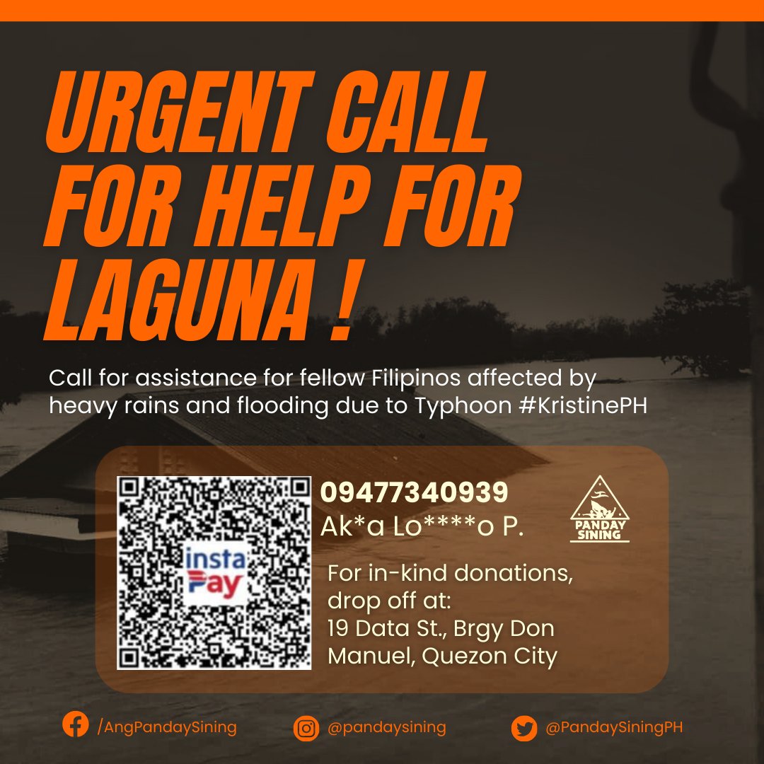 URGENT CALL FOR HELP FOR LAGUNA, CAVITE, BATANGAS, AND QUEZON PROVINCE ! Kasalukuyan na nangangailangan ng tulong ang ating mga kapwa Pilipino sa Laguna, Cavite, Batangas at Quezon Province dahil sa bagyong #KristinePH.