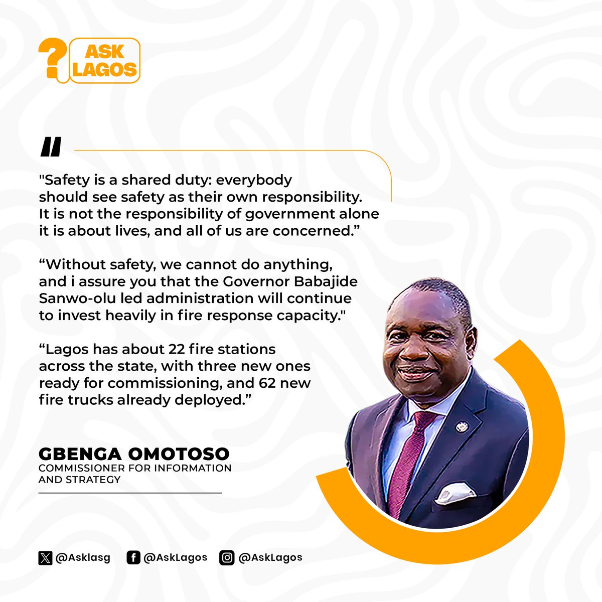 "Safety is a shared duty: everybody should see safety as their own responsibility. It is not the responsibility of government alone — it is about lives, and all of us are concerned.” - @gbenga_omo