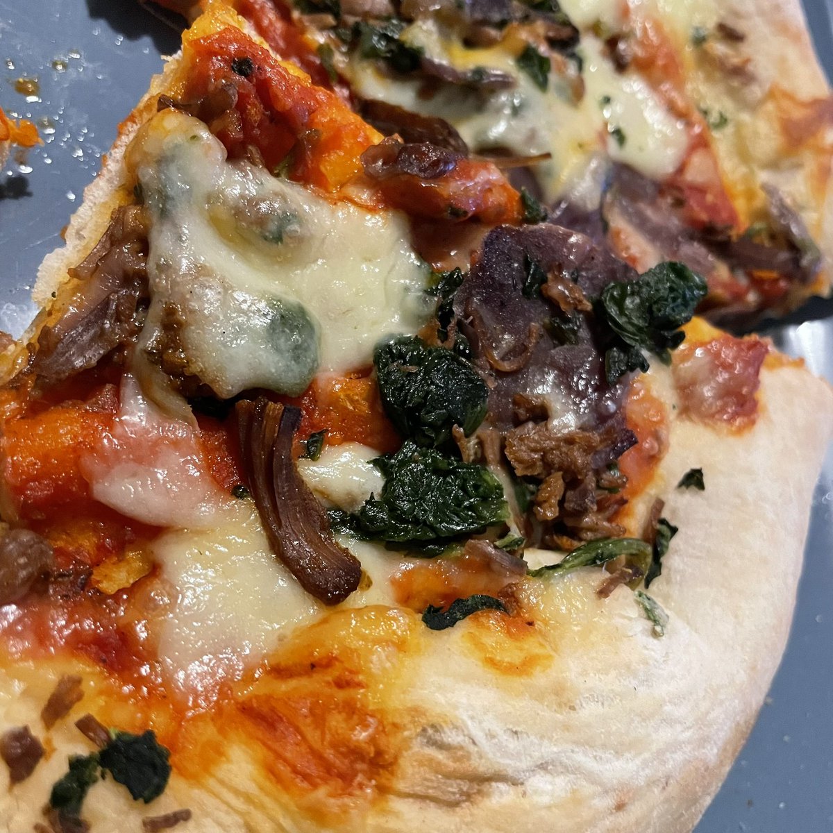 Heartily recommend this for comfort food! Pizza with chianti beef, caramelised red onions, and spinach 💜 #Pizza #CoOp #ComfortFood