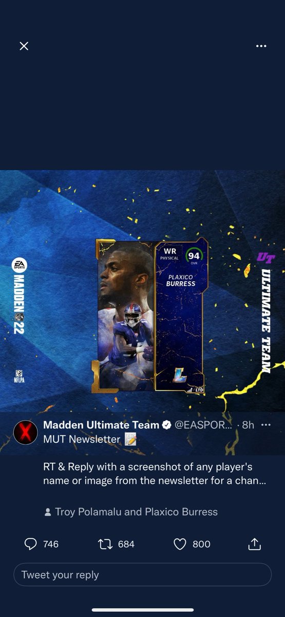 191K Followers 63 Following A home for all #Madden26 game updates from Developers, Live Ops and Community Team for @EAMaddenNFL & @EASPORTS_MUT. Please contact @EAHelp for account issues.