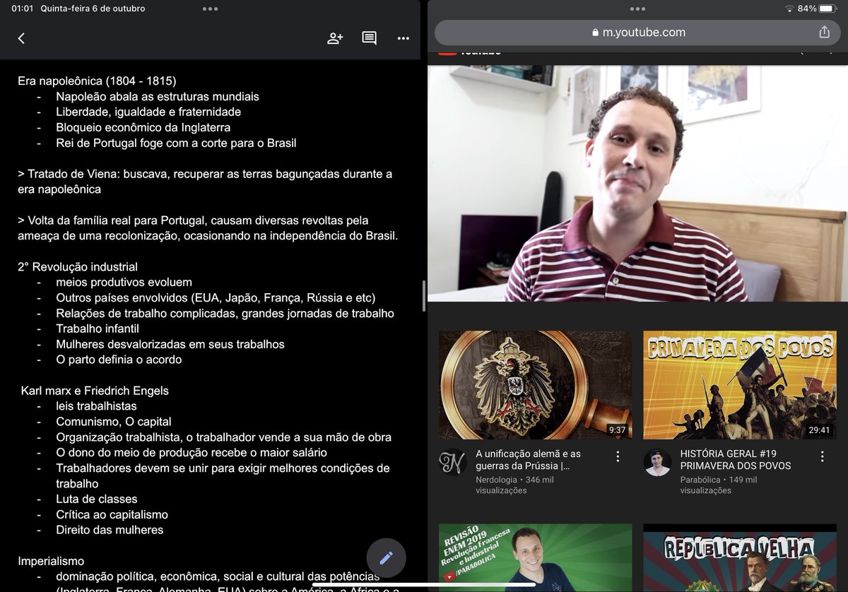 Amanhã eu tenho prova de história Só tô estudando agora pq eu estava me divertindo o dia inteiro enquanto arrumava meu iPad Mas agora já tô botando ele pra trabalhar 💪 * esse carinha da parabólica é muito bom para explicar história, recomendo demais