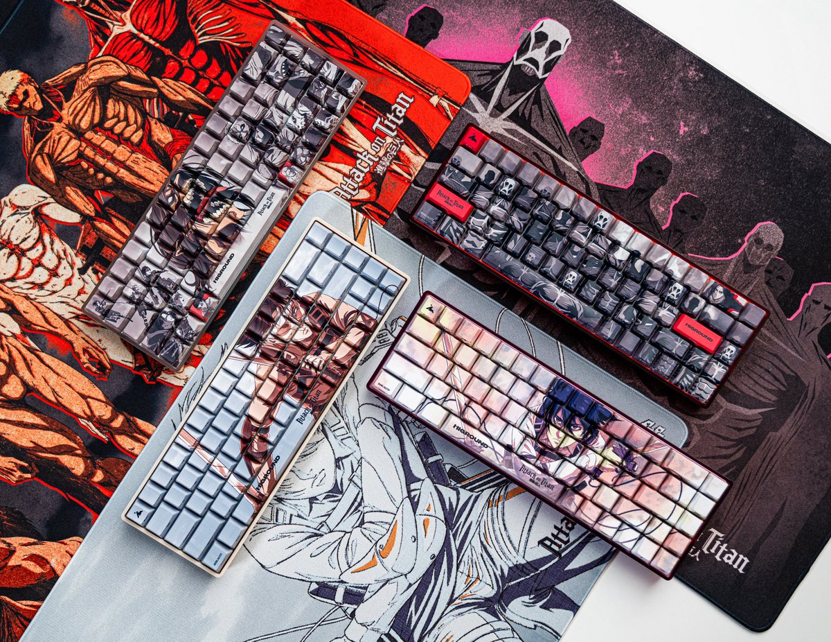 ALL 4 KEYBOARD DESIGNS REVEALED Which one are you copping this Friday? @AttackOnTitanEN x Higround 10th Anniversary Edition. 10/27 12PM PT