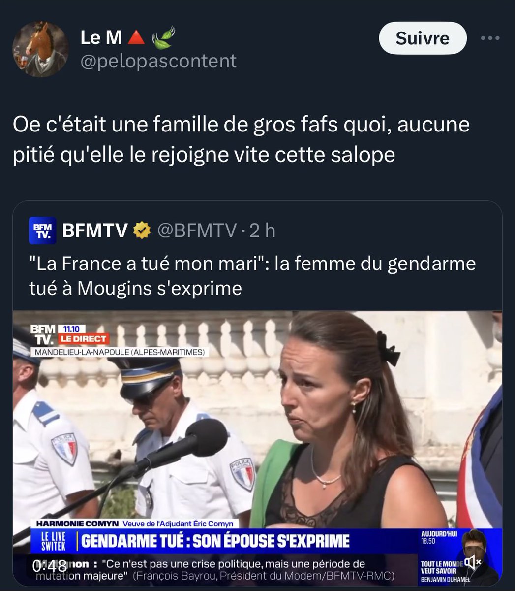 Il est impératif de soutenir la famille du gendarme tué quand on voit le déferlement de haine à son encontre. Que cela soit des médias ou des internautes, c'est à vomir.