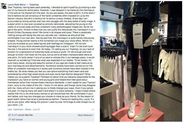 Not this stupidity again. It's a mannequin, some plastic to display clothes, NOT a real person. Get a life! @Topshop