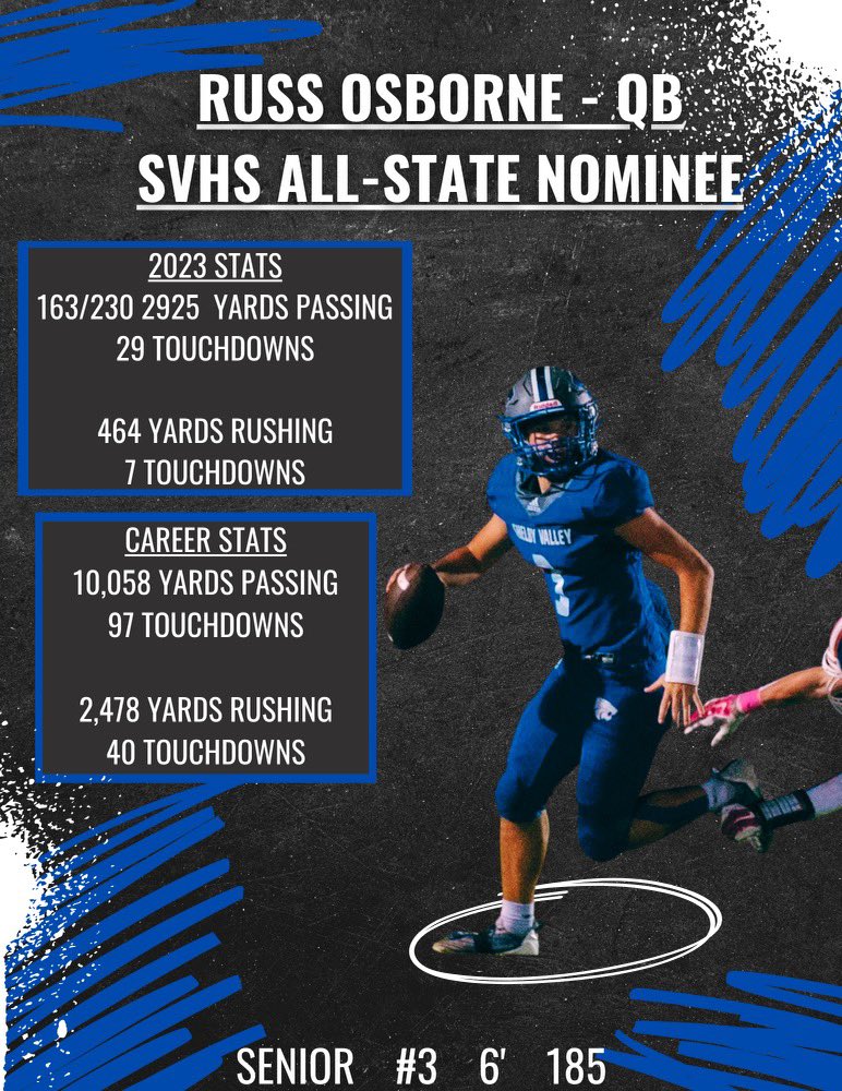Please consider these 2 record setting Wildcats on your all state ballots. Russ and Brady are both currently 11th all time in passing and receiving. Russ has piloted us to 2 straight district titles and regional final appearances and Brady is leading the state in Receiving yards.