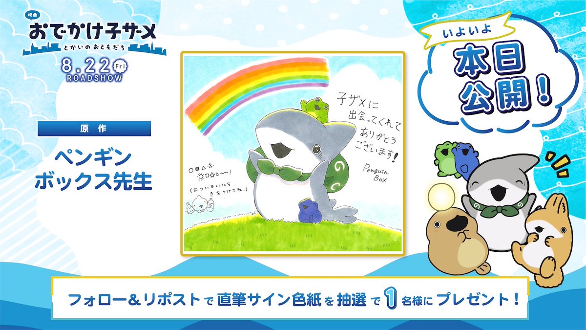 94K Followers 46 Following 「キミとの冒険、きっと忘れない。」SNSで大人気の子ザメちゃんが待望の映画化🍿全国ロードショー公開中🦈🎬 1話▷https://t.co/8aQ3AFx6oy 著者:@Penguinbox1 CAST:#花澤香菜 #潘めぐみ #久野美咲 タグ:#おでかけ子ザメ