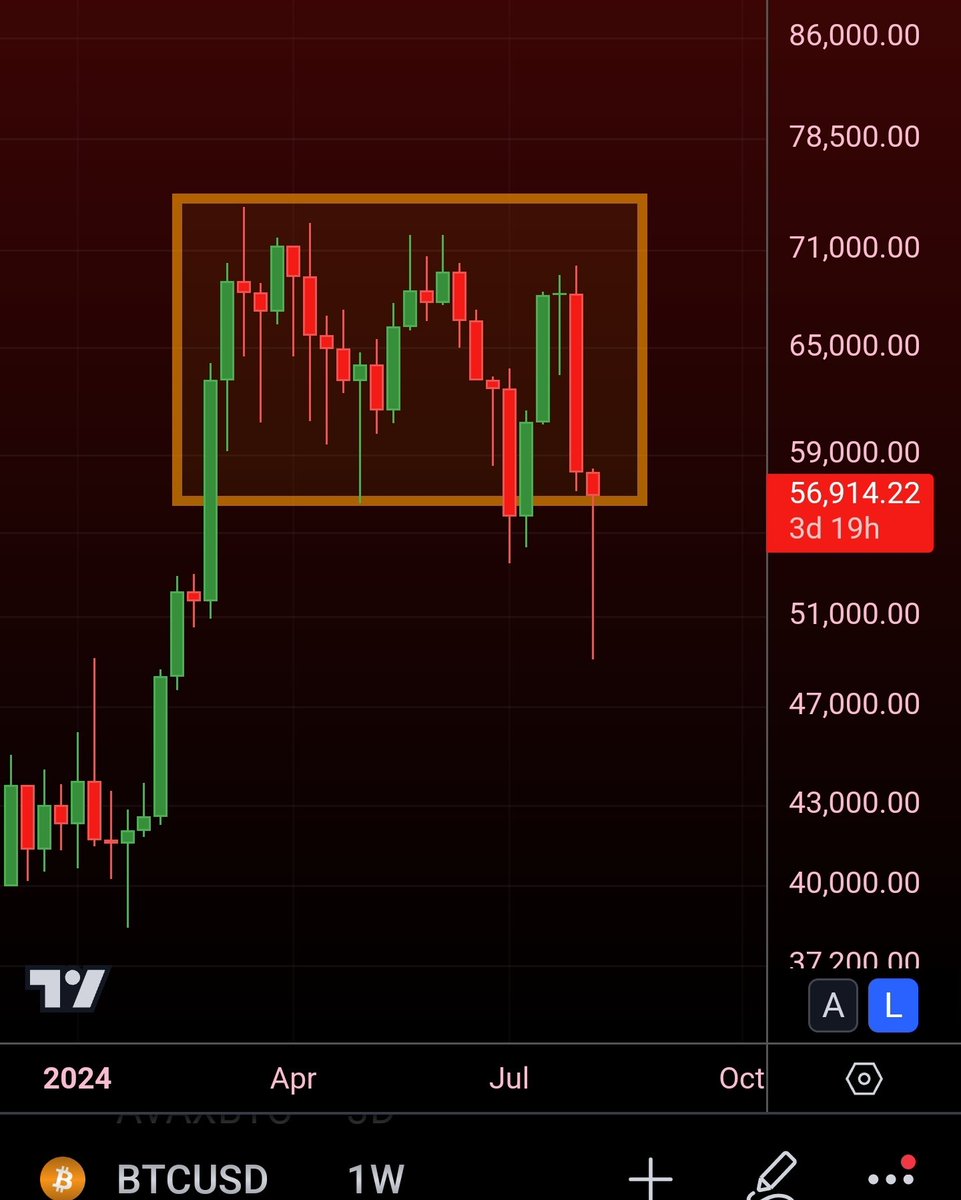 #Bitcoin BTC closed below $60,000, followed by a quick 15% dump on today's daily candle. The next important support is near the long-term upward-sloping trendline. The price is down -33% from the $73,900 ATH, marking the biggest correction of this cycle so far. https://t.co/Ar1uUxmifr