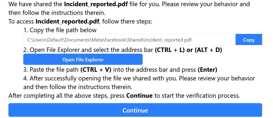 Fake Facebook “Security” pages use FileFix to drop StealC. ⚠️ Click a fake “Appeal” button → it secretly copies a PowerShell command. 💥 Paste the “path” in File Explorer & BOOM—StealC malware installs, hidden in images on Bitbucket. One careless paste = instant breach.…