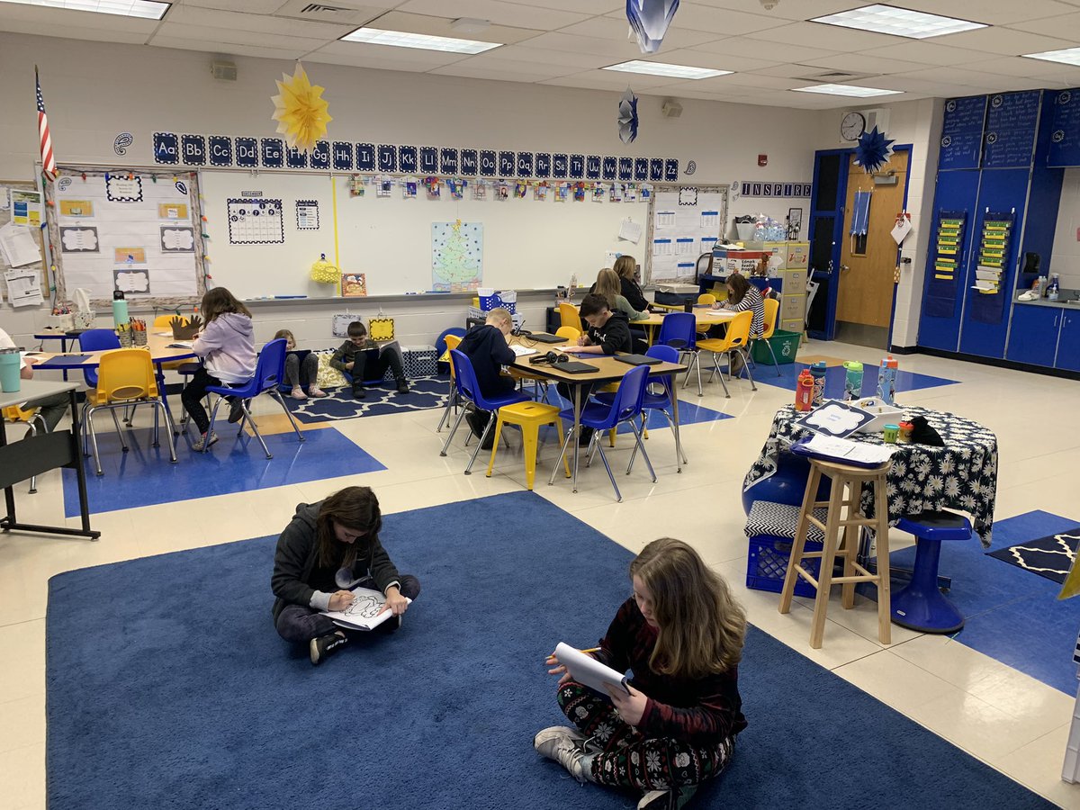 Merry Grinchmas… working on our Literacy Centers by the fire sipping hot chocolate. @CCSPrincipal