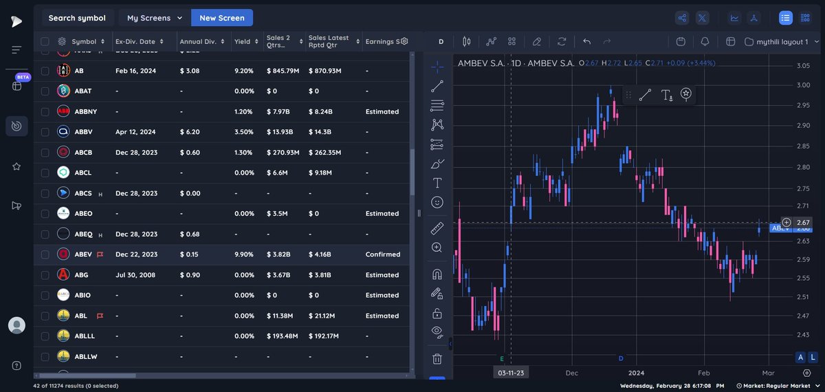 Screener: $A $AA $AAA $AAAU $AACG $AACI $AACIU $AACIW $AACT $AACT.U $AACT.WS $AADI $AADR $AAIC $AAICpB $AAICpC $AAIN $AAL $AAMC $AAME $AAN $AAOI $AAON $AAP $AAPB $AAPD $AAPL $AAPU $AAPY $AAT $AATC $AAU $AAXJ $AB $ABAT $ABBNY $ABBV $ABCB $ABCL $ABCM $ABEO $ABEQ $ABEV via @Deepvue