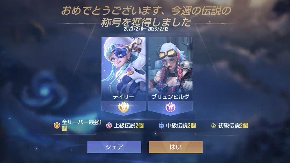 そういえば前シーズンは、あまり星を獲得できなかった。マスター星30ぐらい楽に行けるようになりたいのだが実力が••• ブリュンヒルダの勝率は60いってきたようで勝率からするとやっぱり相性いいようだ🤔
