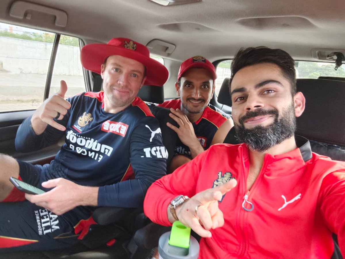 Chilling with these dudes post practice @ABdeVilliers17 @HarshalPatel23