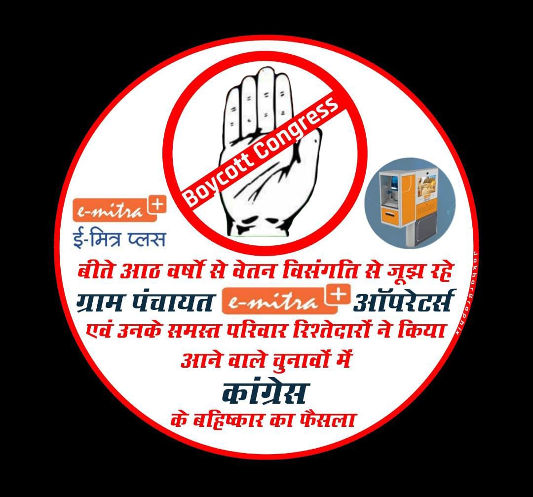 बीते 8 वर्षो से वेतन विसंगति से जूझ रहे #ग्रामपंचायत_ईमित्रप्लस_ऑपरेटर्स एवं उनके समस्त परिवार रिश्तेदारों ने किया आने वाले चुनावों में कांग्रेस के बहिष्कार का फैसला, @ashokgehlot51 @RahulGandhi @rameshmeena63