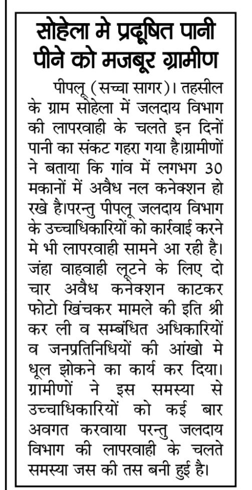 जल जीवन मिशन पर भी ध्यान देवे सरकार