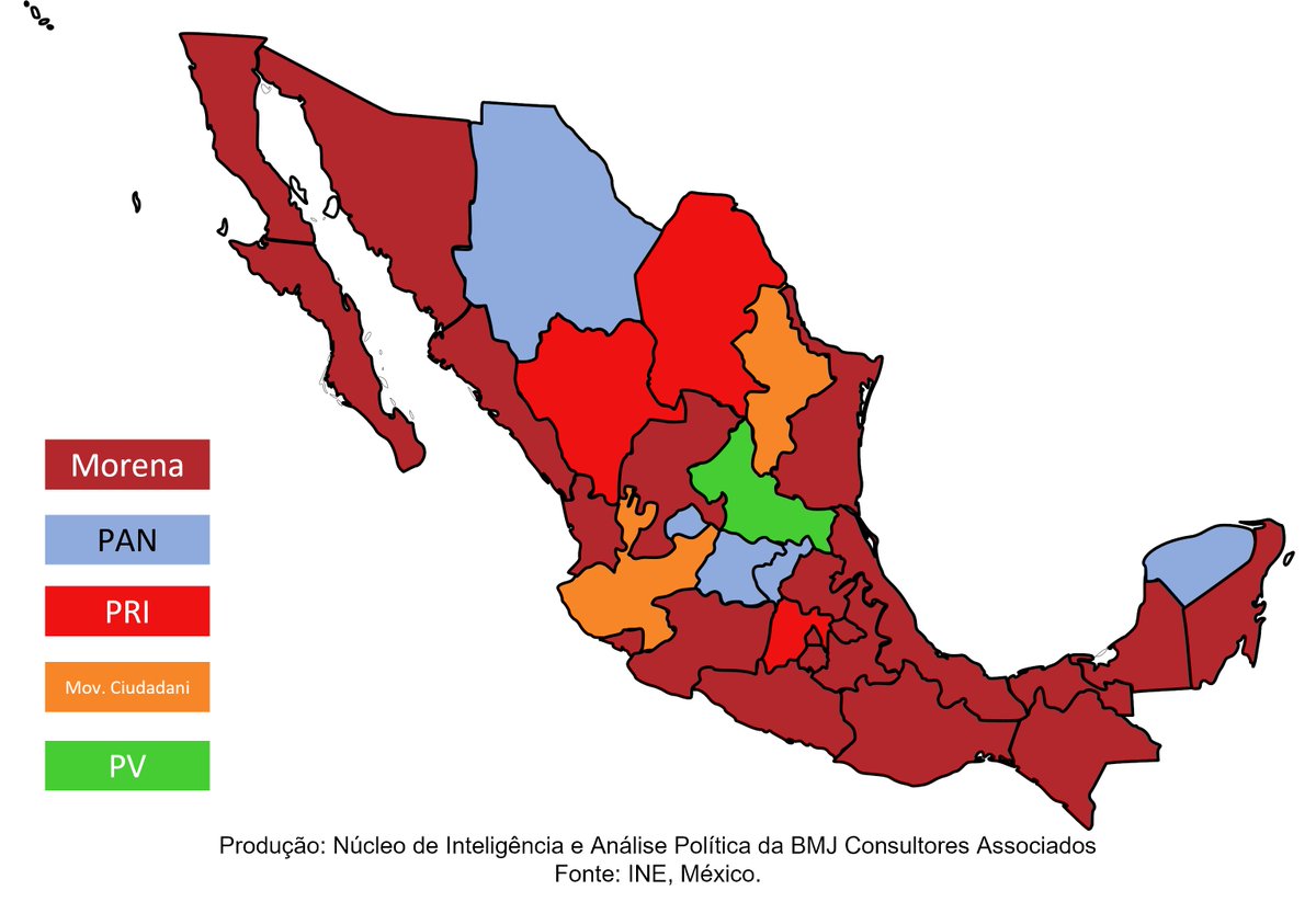 #BMJInternacional: Neste domingo (5), seis estados mexicanos realizaram eleições para eleger seus novos governadores. Com a nova reconfiguração, o Morena, partido do presidente @lopezobrador_, passa a dominar o mapa político no país. (+)