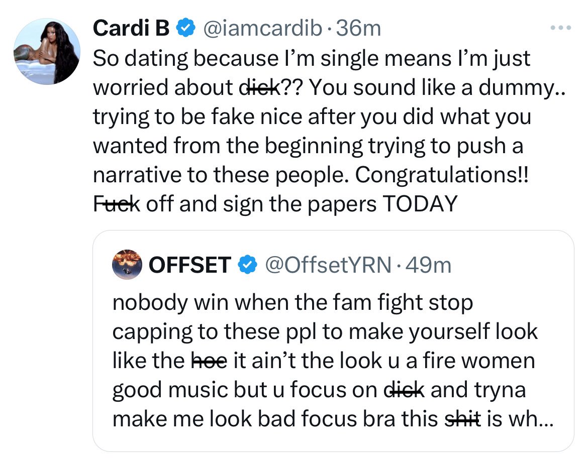 Cardi B Claps Back at Offset After He Calls Her Out: “You Sound Like a Dummy… Sign the Papers TODAY!”