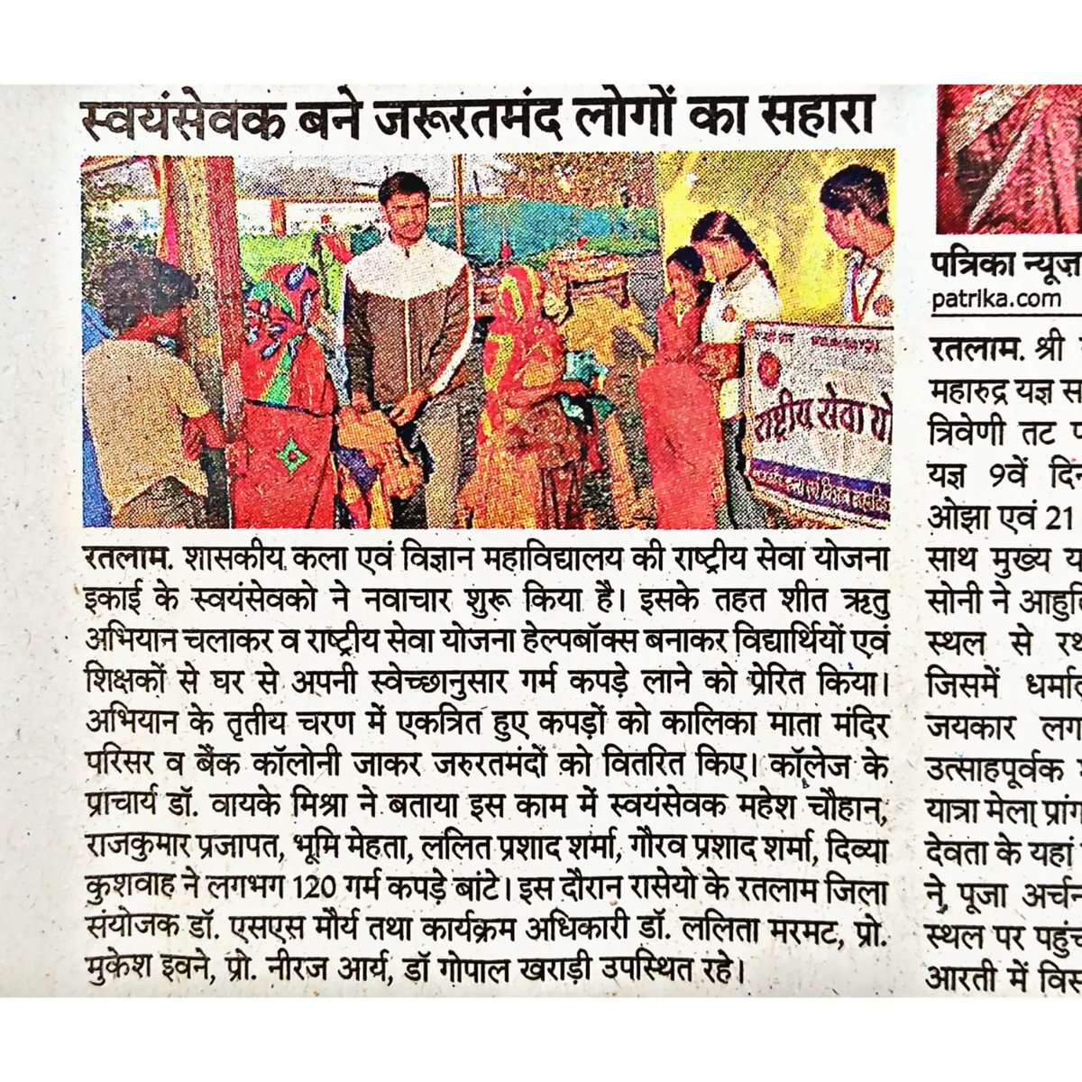 शासकीय कला एवं विज्ञान महाविद्यालय राष्ट्रीय सेवा योजना इकाई के स्वयंसेवक को हार्दिक बधाई एवं शुभकामनाएं @smart_mahesh07 @MRyashusolanki @ianuragthakur @KirenRijiju @RAHULSINGHNSSMP @askabir_ @nss_to @NssRatlam @YASMinistry @ConnectingNss