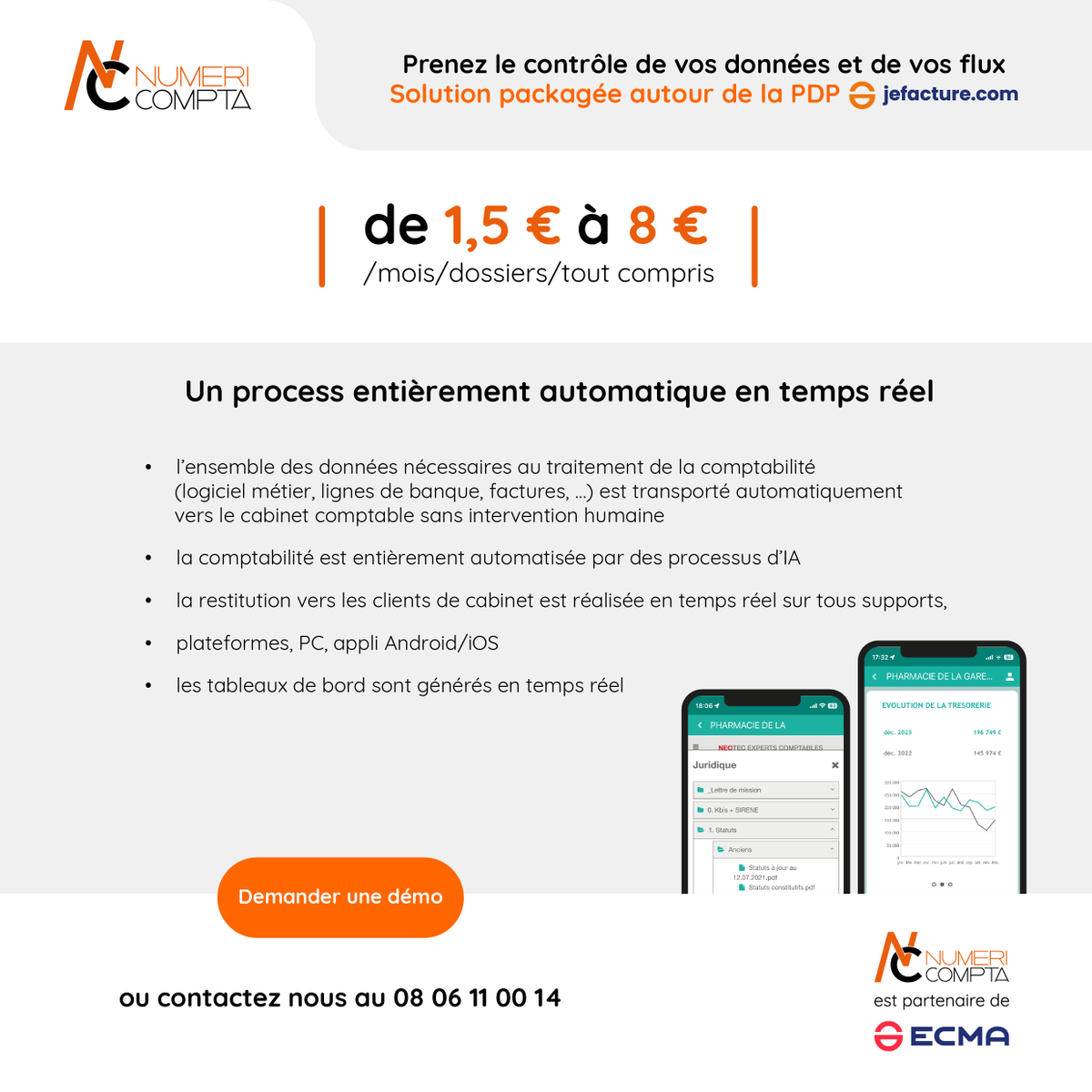 Prenez le contrôle de vos données ✨ @numericompta est partenaire de @ECMA_news JeFacture.com #ExpertsComptables #jefacture #PDP #FactureElectronique #Digitalisation #Hébergement #IntelligenceArtificielle #InnovationComptable numericompta.fr/contact.php