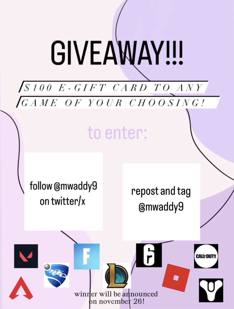 GUYS!!! I’m doing a giveaway in honor of hitting 2k on twitch! In order to enter, you must be following me on twitter/x, and repost this giveaway! Good luck everyone! (Winner announced on November 26)🩷 #giveaway #valorant #LeagueOfLegends #csgo #RainbowSixSiege #mwaddy9