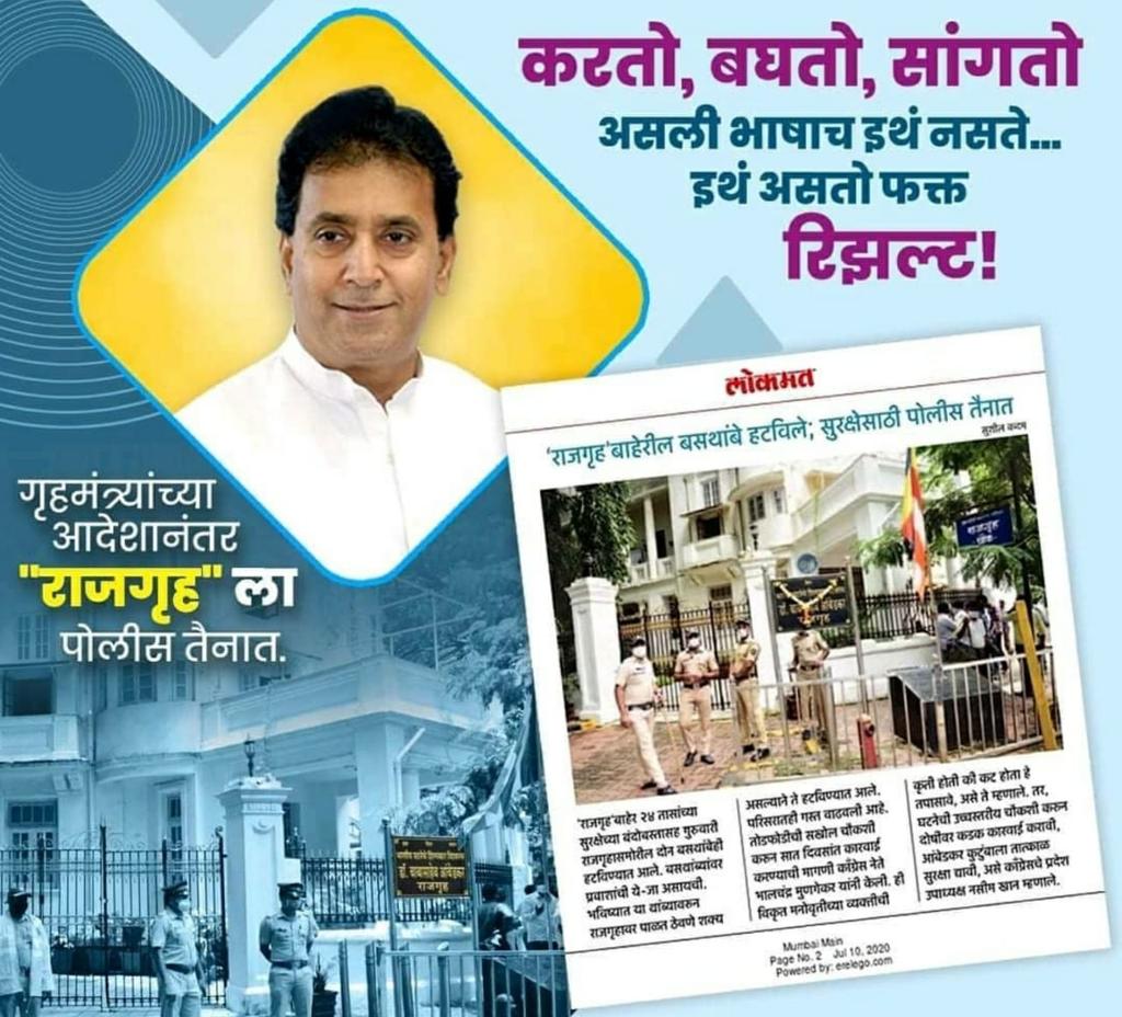 करतो..बघतो.. सांगतो.. असली भाषा @NCPspeaks ची नाही...इथं फक्त #result गृहमंत्री @AnilDeshmukhNCP यांच्ये तात्काळ आदेश...#Rajgruha वर पोलीस तैनात धन्यवाद साहेब!! #RajgruhaStandsTall #RajgruhaOurPride @MumbaiNCP @mumbai_NYC