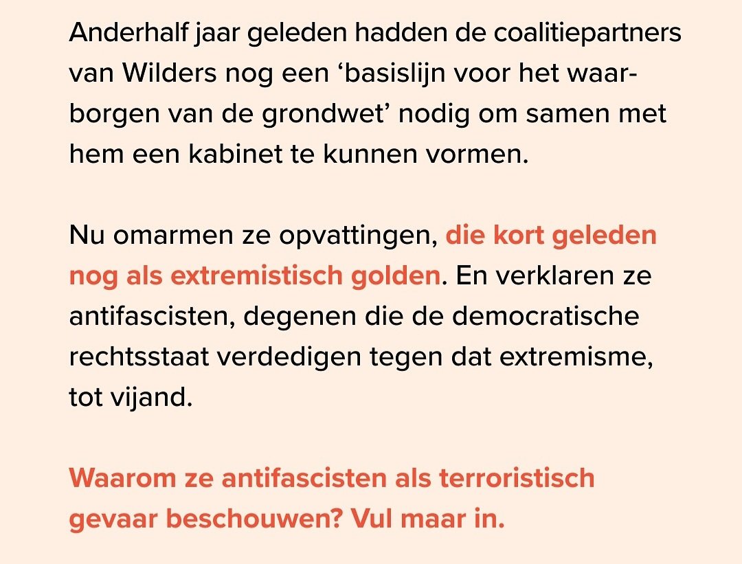 Precies dit: VVD steunt de motie om Antifa te verbieden. Maar nee, Dilan vindt het absoluut niet ondermijnend om met het fascistische PVV in zee te gaan. Wat een idioot. #PauwendeWit