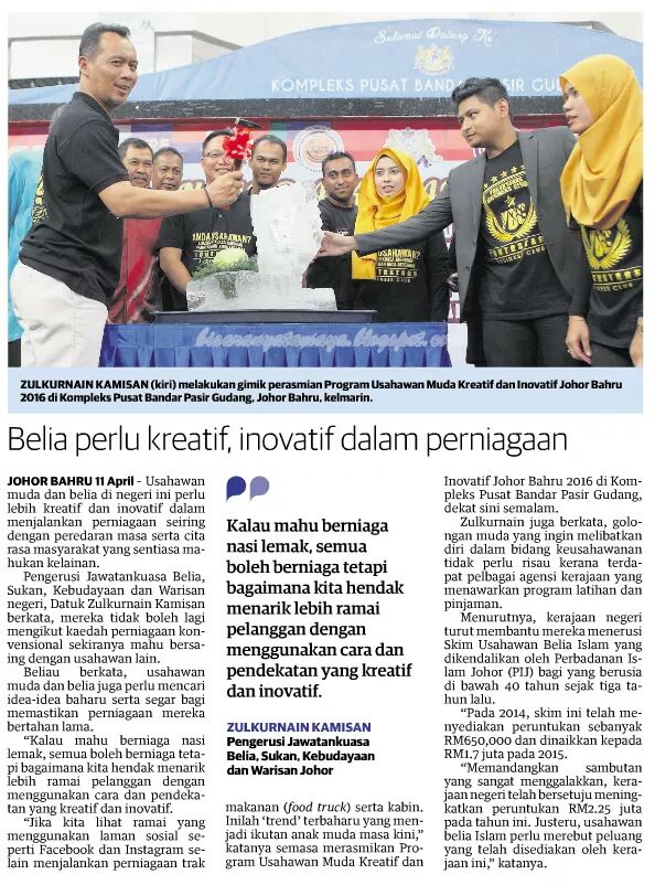 Terima Kasih @DatoZulkurnain Dan Semua Yang Terlibat Menjayakan Program Usahawan Muda Kreatif & Inovatif Johor Bahru