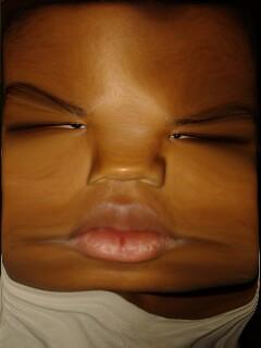 Voici un monstre qui a un oeil blanc et un oeil bleu un nez de cochon des dent pourri et une blessure consu