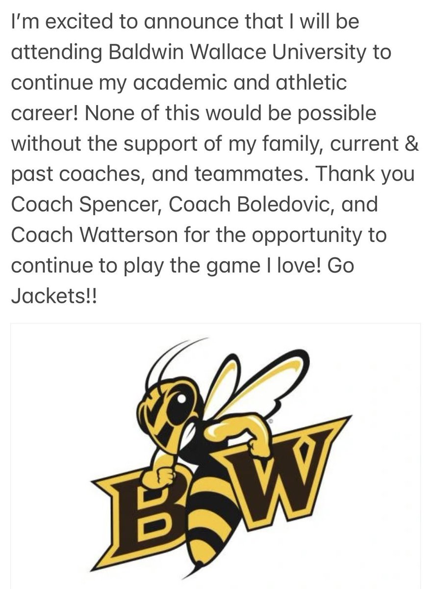 Excited and proud to announce my commitment to Baldwin Wallace University to continue my academic & athletic career!! Go Jackets!! @BW__Softball @NRBearsSoftball @lewarhawks05