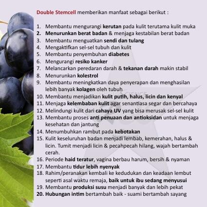 Produk kesehatan menggunakan stemcell Apel, Anggur, Acai Berry, Argan, Blueberry. Penurun berat badan,Kolestrol,Diabetes,Perawatan Kulit,Kanker,Migrain,etc. doublestemcellindo.com Indonesia Joined March 2014-