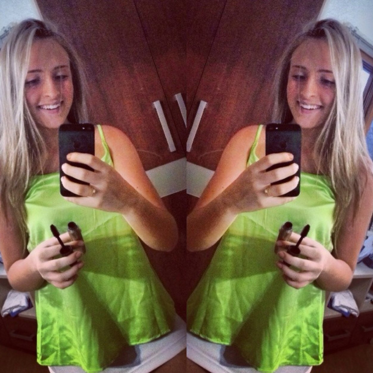 Tinha uma guria linda na loja com um estojo de make,demais