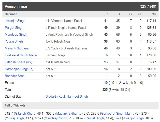 #OnThisDay in 2015, PUNJAB chased down 324 in just 49 overs to beat Services and qualify for the quarters of VIJAY HAZARE trophy. @YUVSTRONG12 powered the chase with 98 off just 83 balls, with valuable contributions from birthday boy @mandeeps12, @ps_chatha and @jiwanjotsingh24