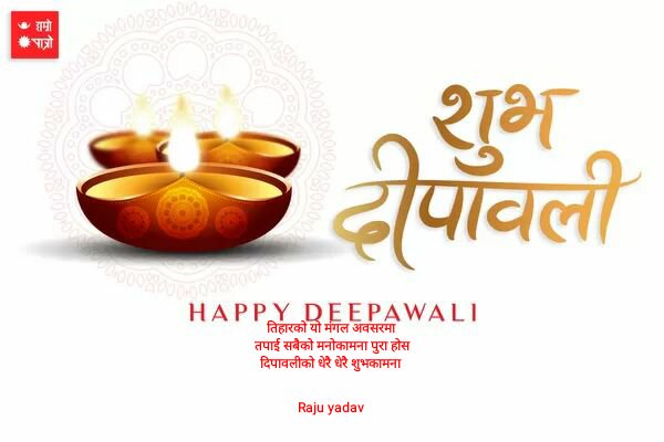 तिहारको यो मंगल अवसरमा तपाई सबैको मनोकामना पुरा होस दिपावलीको धेरै धेरै शुभकामना Raju yadav sent via @hamropatro