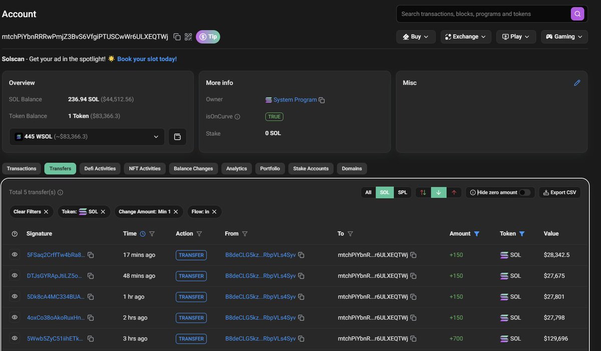 [Quick update] The wallet mtchPiY...XEQTWj has burned nearly 600 SOL in Jito fees for spamming OSOL snipes, and this number is continuing to increase every second as long as @shadid_io delay the launch.👀 Link: solscan.io/account/mtchPi…