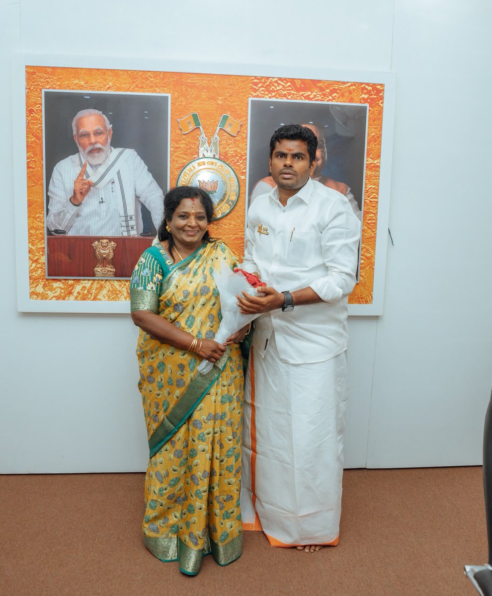 இன்றைய தினம், மாண்புமிகு மத்திய அமைச்சர் திரு @kishanreddybjp, மாண்புமிகு மத்திய இணையமைச்சர் திரு @Murugan_MoS, பாராளுமன்றத் தேர்தல் பொறுப்பாளர் திரு @MenonArvindBJP ஆகியோர் முன்னிலையில், கட்சியில் மீண்டும் இணைந்துள்ள அக்கா திருமதி @DrTamilisaiGuv அவர்களை வரவேற்று மகிழ்கிறேன்.…