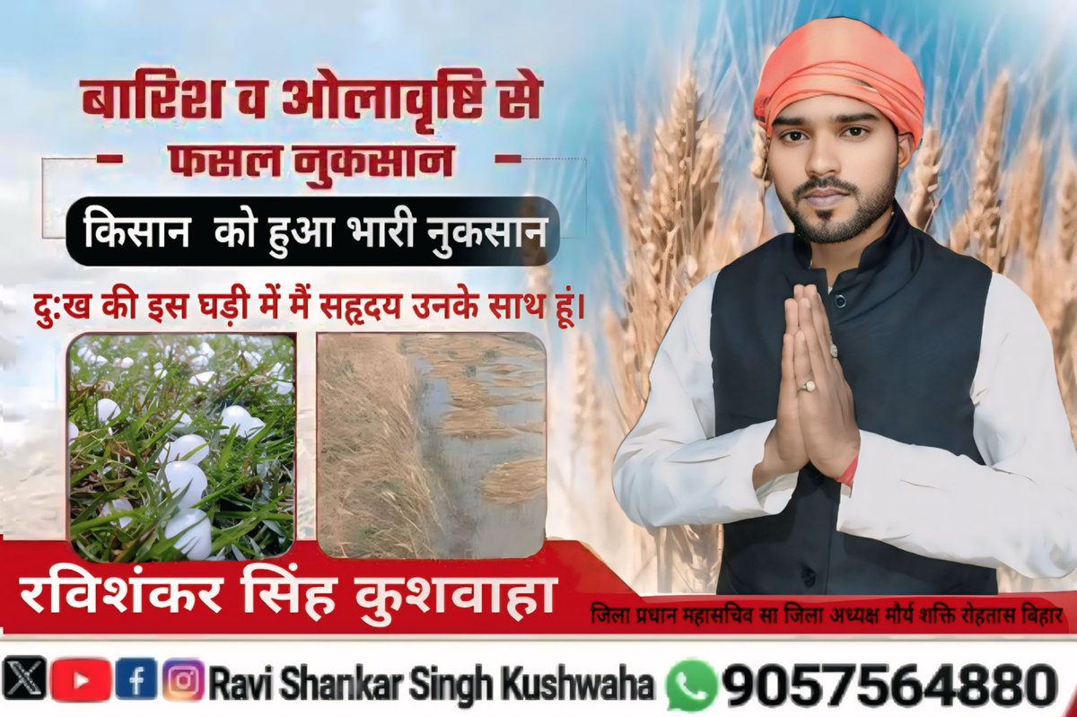 प्राकृतिक आपदा, तेज #बारिश एवं #आंधी, #आलावृष्टि से रोहतास में #किसान लोगों को हुआ भारी #नुकसान इस दु:ख की घड़ी में मैं #सहृदय उनके साथ हूं। #ईश्वर सभी परिवारजनों को इस अपार #दु:ख को सहन करने की शक्ति दे।🙏 #बारिश #आंधी #आलावृष्टि #Rohtas #ravishankarsinghkushwaha #Bihar