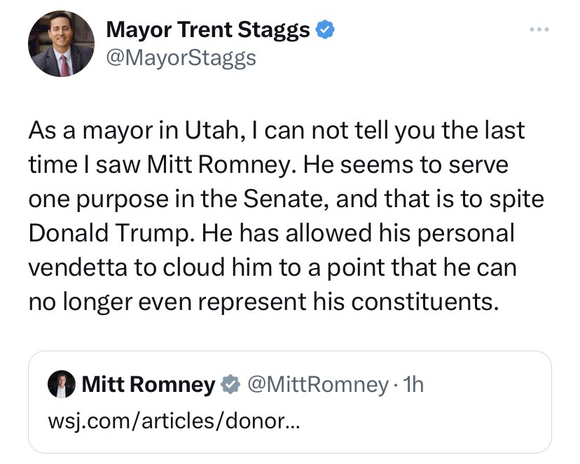 If Mike Lee does not fight to fix what occurred in Utah’s 2024 gubernatorial race he is just as bad as an Utah legislator who doesn’t commit to repealing SB 54. This whole “we will fix it next time” narrative is the doctrine of an enemy within. I pray Lee is not an enemy within.
