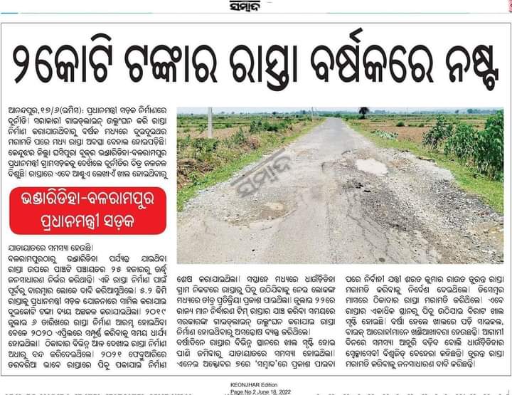 ଗୋଟିଏ ବର୍ଷ ରେ ଯଦି ରାସ୍ତା ର ଏଭଳି ଅବସ୍ଥା ତାହେଲେ , ଏତେ ଟଙ୍କା ଖର୍ଚ୍ଚ କରି କି ଲାଭ? ଅନୁରୋଧ ଦୟାକରି ଏଇ ବିଷୟରେ ତର୍ଜମା କରି ବିହିତ ପଦକ୍ଷେପ ଗ୍ରହଣ କରାଯାଉ। @PritiranjanBJD @Naveen_Odisha @DistAdmKeonjhar @MoSarkar5T