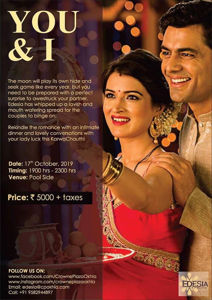 Good food and romantic ambiance are always a great addition to special celebrations; don’t you agree?We welcome you to enjoy both on the special occasion of ‘Karwa Chauth’ at #CrownePlazaToday Okhla New Delhi...