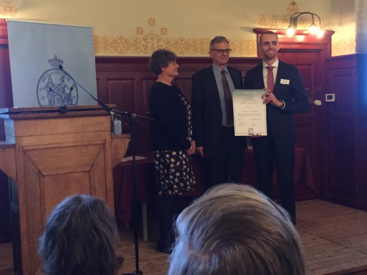 De Dr. Saal van Zwanenberg Onderzoeksprijzen gaan dit jaar naar 1. Margot Roeten (@VUamsterdam), 2. Julie Verhoef (@Radboud_Uni) en 3. Sam Hariri (@UniUtrecht). 'Deze prijs past als een jas bij mijn overgrootvader,' zegt Willem Schudel, achterkleinzoon van Salomon van Zwanenberg.